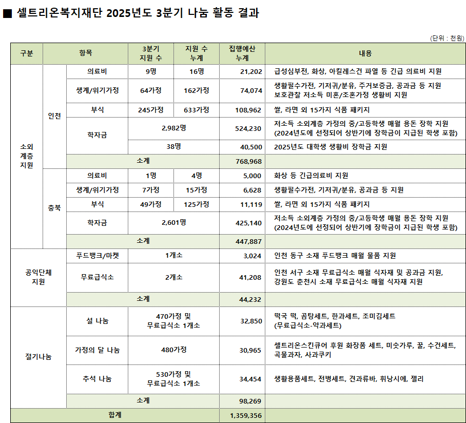 2025년도 3분기 나눔 활동 결과 안내