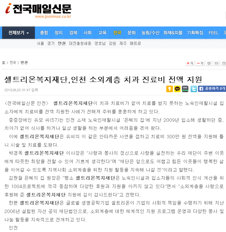 신한뉴스, 전국매일신문을 통해 재단의 의료비 틀니 지원사업에 관한 내용이 알려졌습니다.